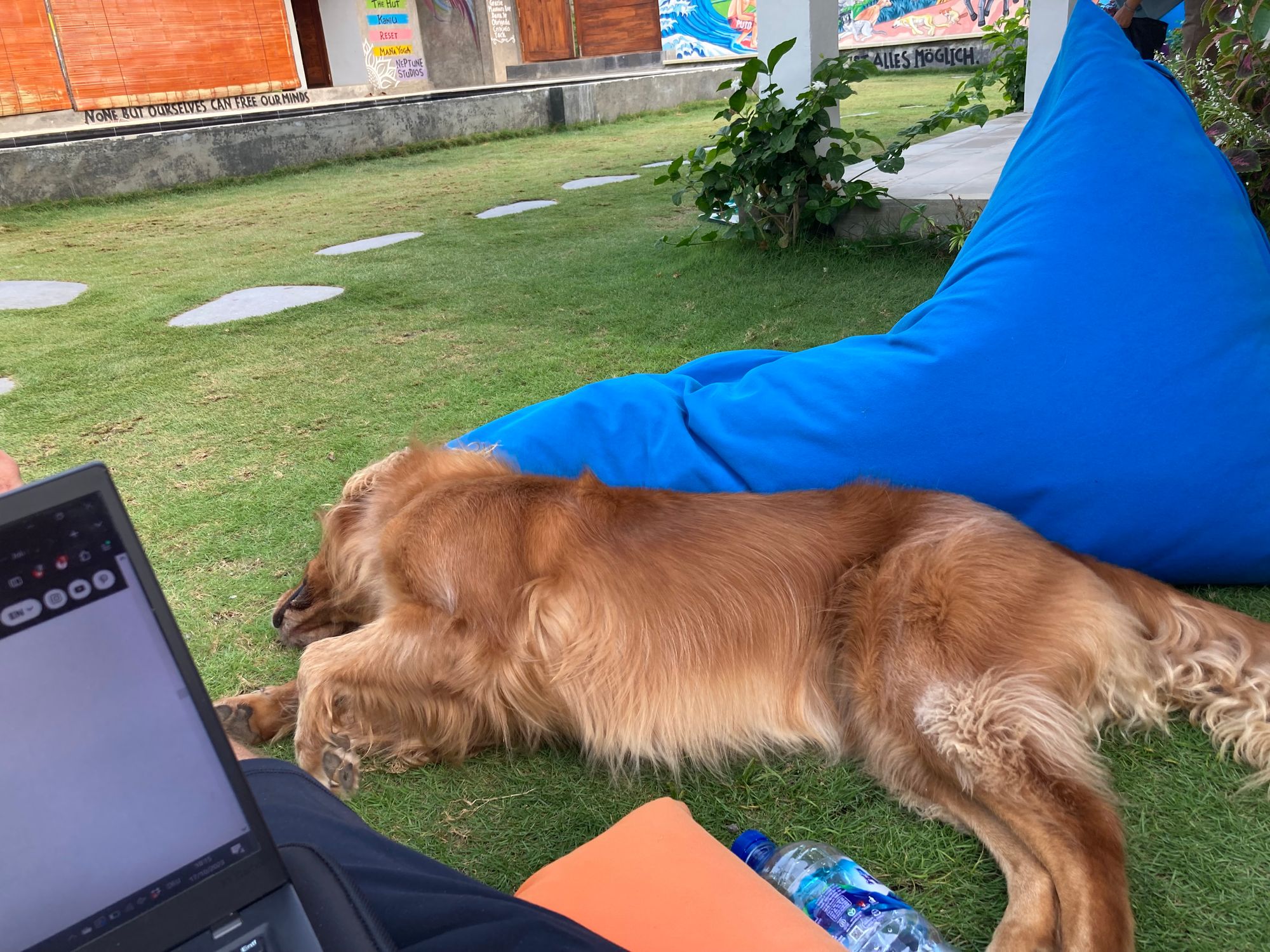 Dort werfe ich mich erstmal in Sitzsack schreibe die Posts und recherchiere ein bisschen was man machen kann. Irgendwann habe ich Hunger und suche etwas Essbares.