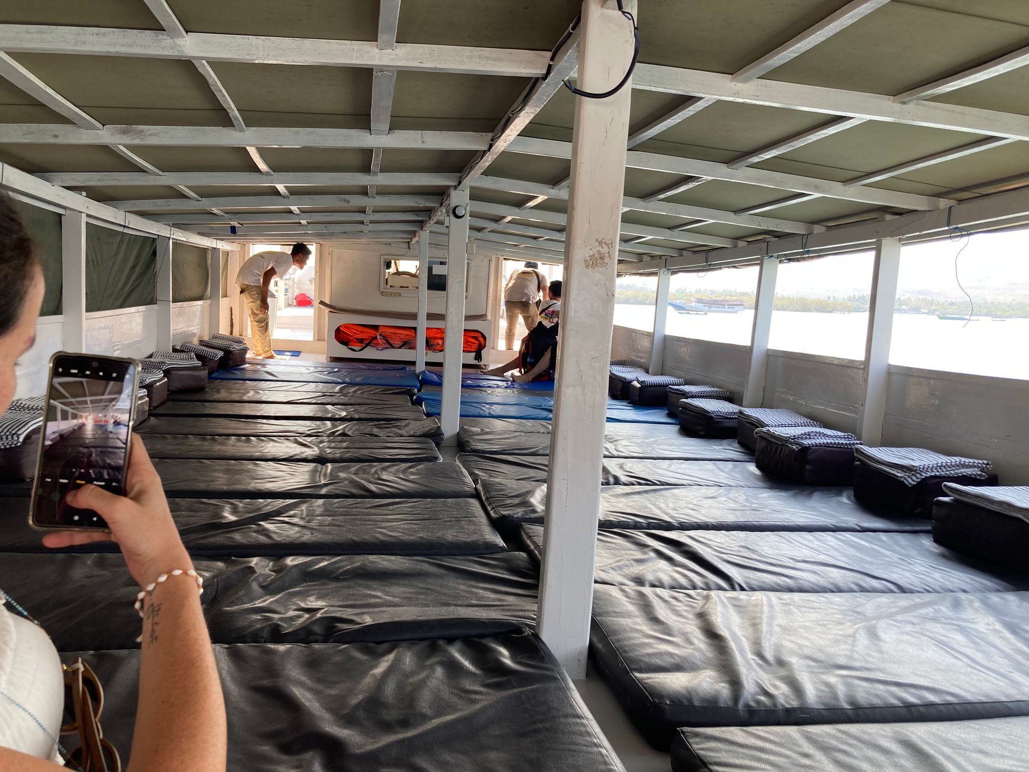 Angekommen wurden zuerst das Boot begutachtet auf dem man die nächsten drei Tage verbringt. Kurz darauf ging es auch schon los... die Dieselmaschine wurde angeworfen und man fuhr im langsamen Tempo zu. Später stelle sich heraus, dass das Tempo unsere Reisegeschwindigkeit ist.