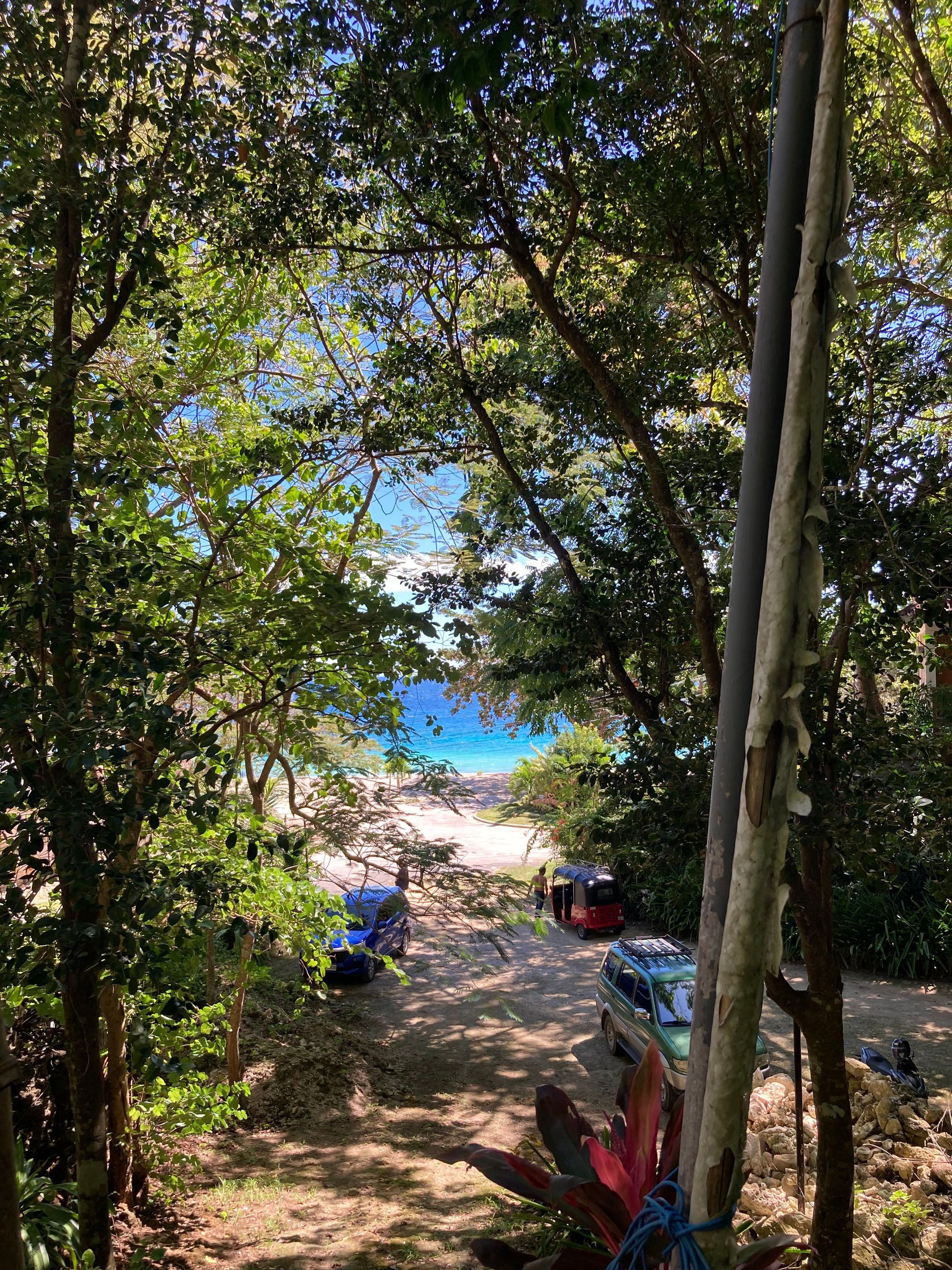 Den Nachmittag verbrachten wir dann am Strand. Beim Eintritt konnte ich noch den Studentenrabatt aushandeln. War es kein Sandstrand, sondern es waren überall kleine Korallen. Dafür war das Wasser herrlich hellblau und wunderbar warum.